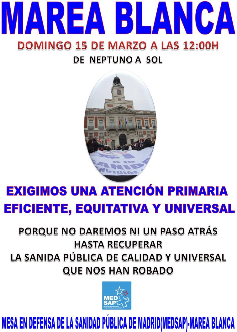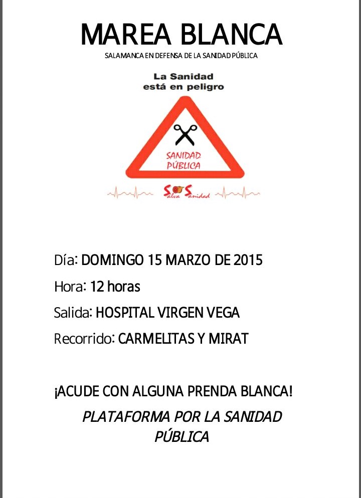 La Federación de Asociaciones para la Defensa de la Sanidad Pública apoya la convocatoria el próximo jueves 19 de marzo, realizada por SOS Salud Sanidade - Pública de manifestaciones en todas las áreas de Galicia en contra de los recortes y las políticas de desmantelamiento y privatización de la Sanidad Pública, y hacemos un llamamientos a la masiva participación de profesionales y ciudadanía.