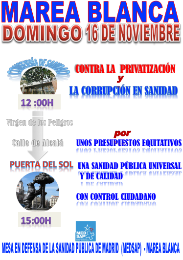 5- La falta de comunicación con los profesionales del sistema, que se reducía a reuniones con el irrelevante foro de la profesión médica, y no con las mareas blancas de Madrid y de otras CCAA, en su dura batalla por la defensa del sistema sanitario público.